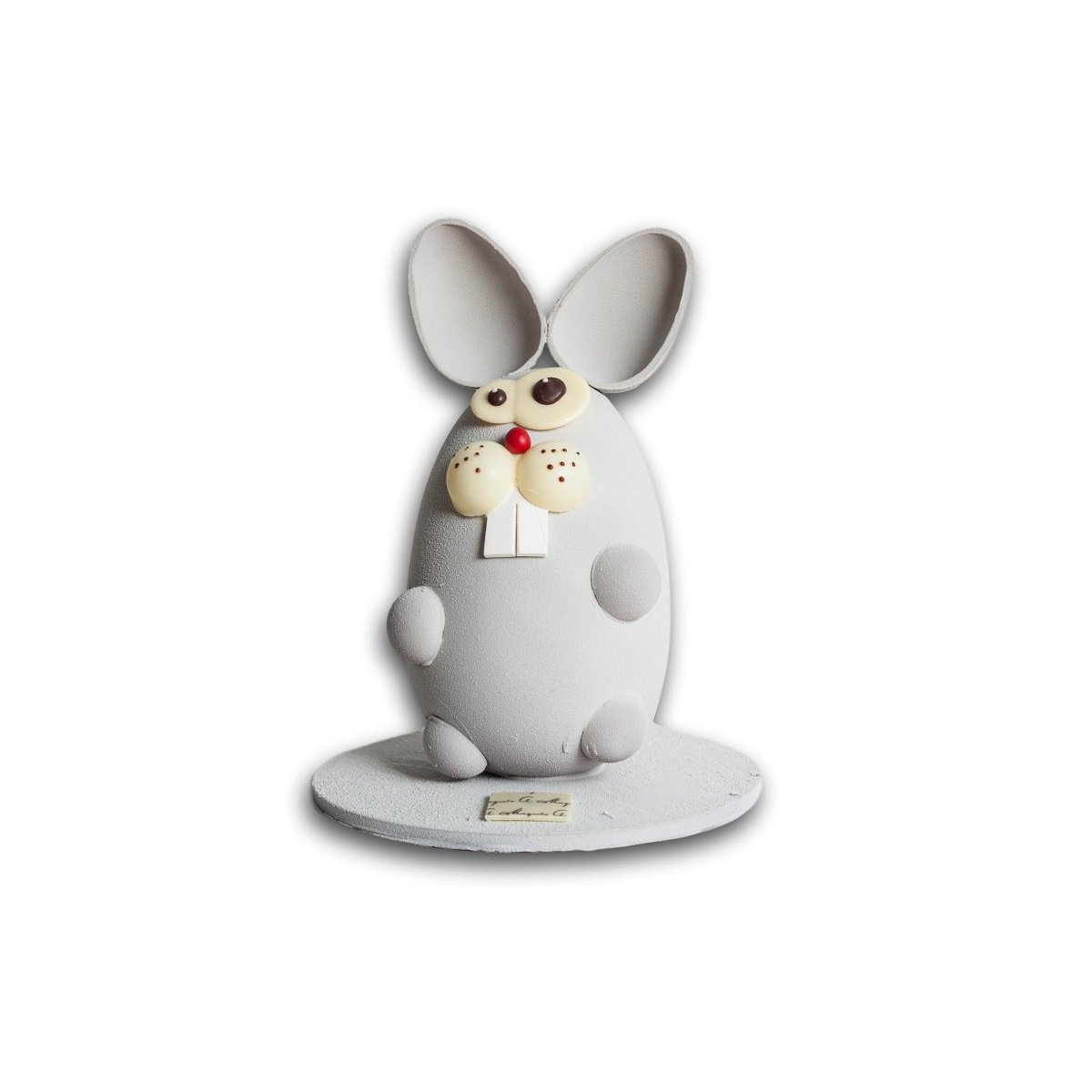 Lleva dos huevos de chocolate y plumas de colores.