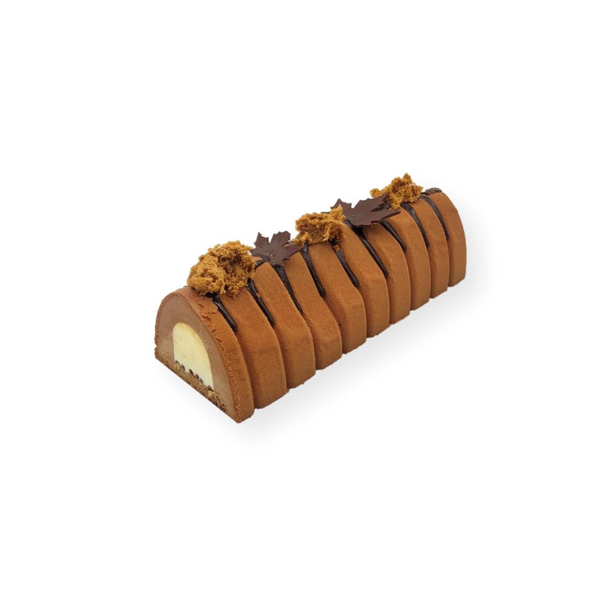 • Decoración hojas de chocolate negro y bizcocho de avellana.